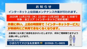 - 2025.11.20 【重要なお知らせ】「インターネットサービス」メンテナンス作業に伴いご利用が一時できなくなります