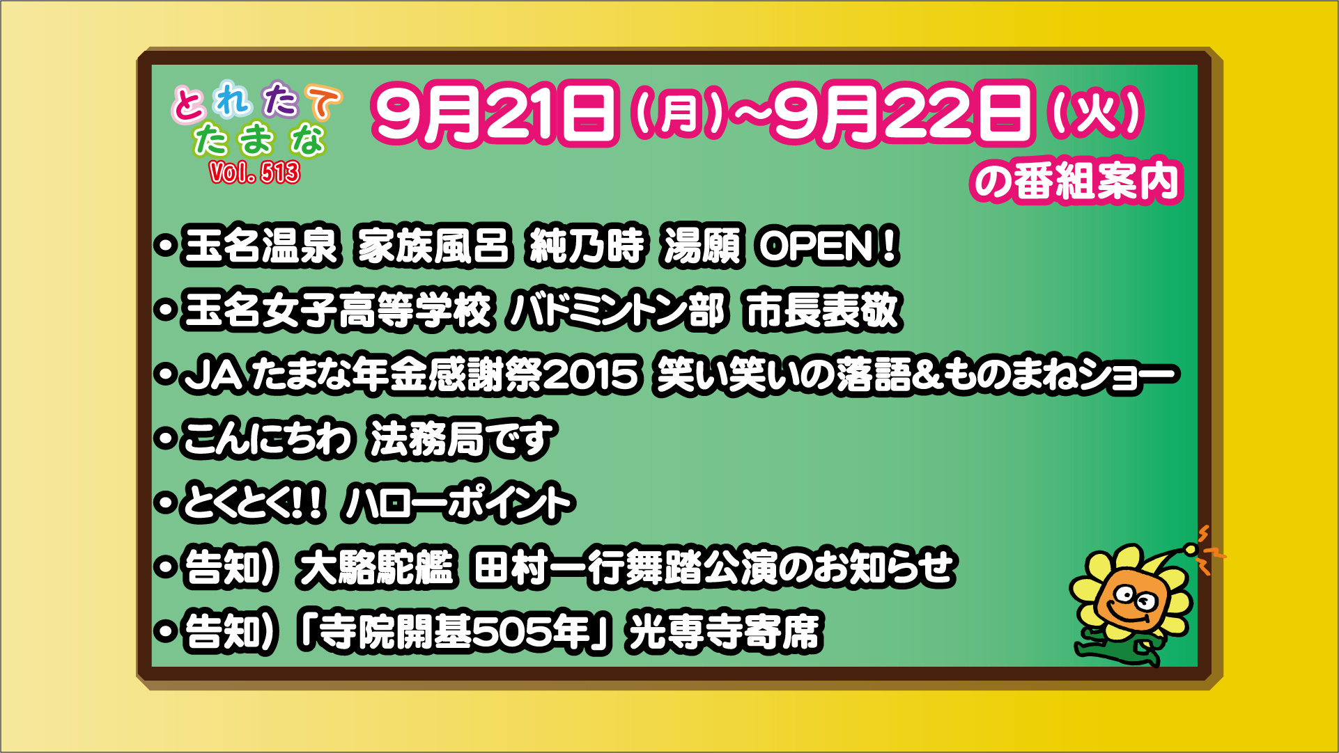 > とれたてたまな 9月21日~9月22日放送