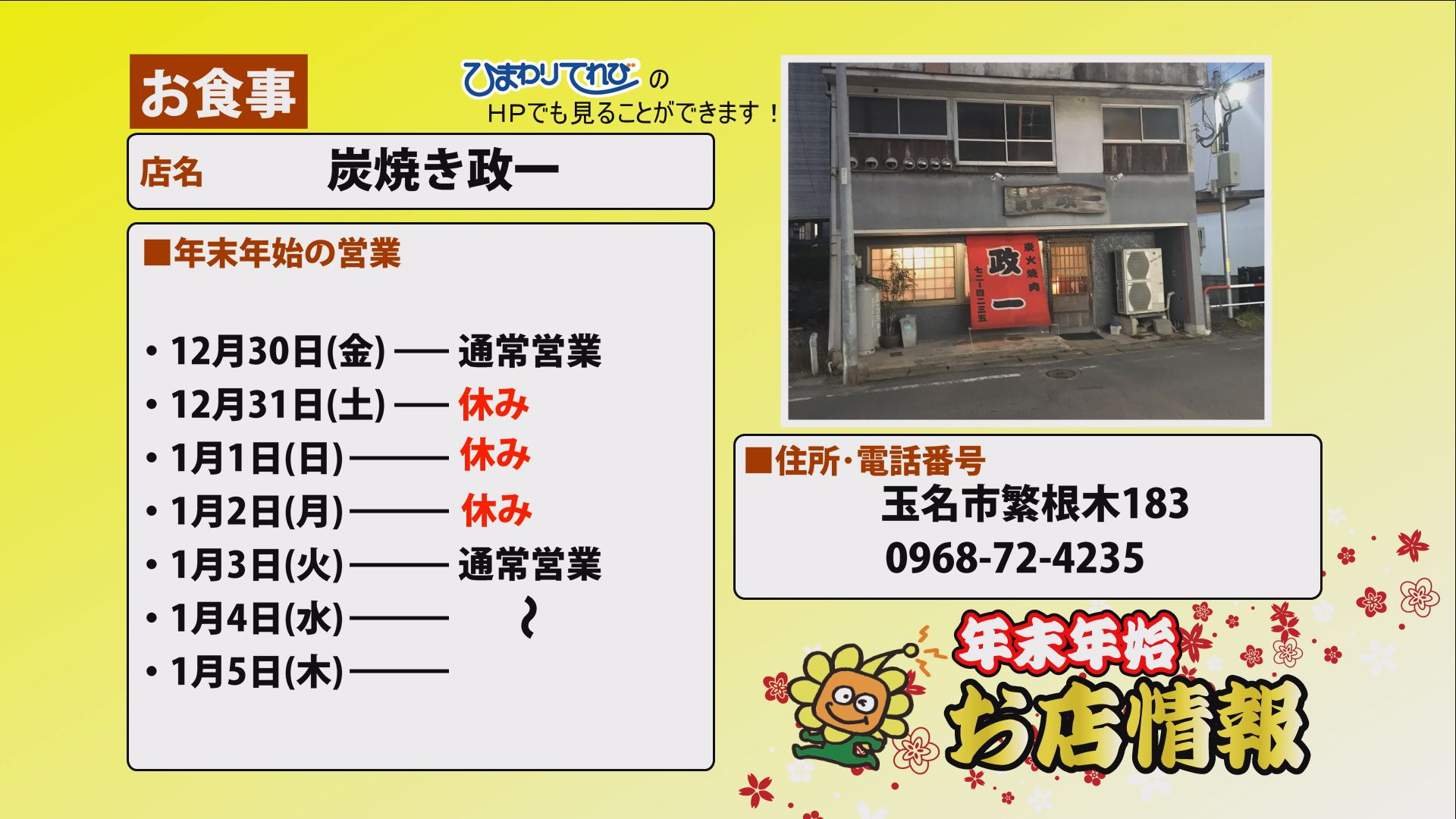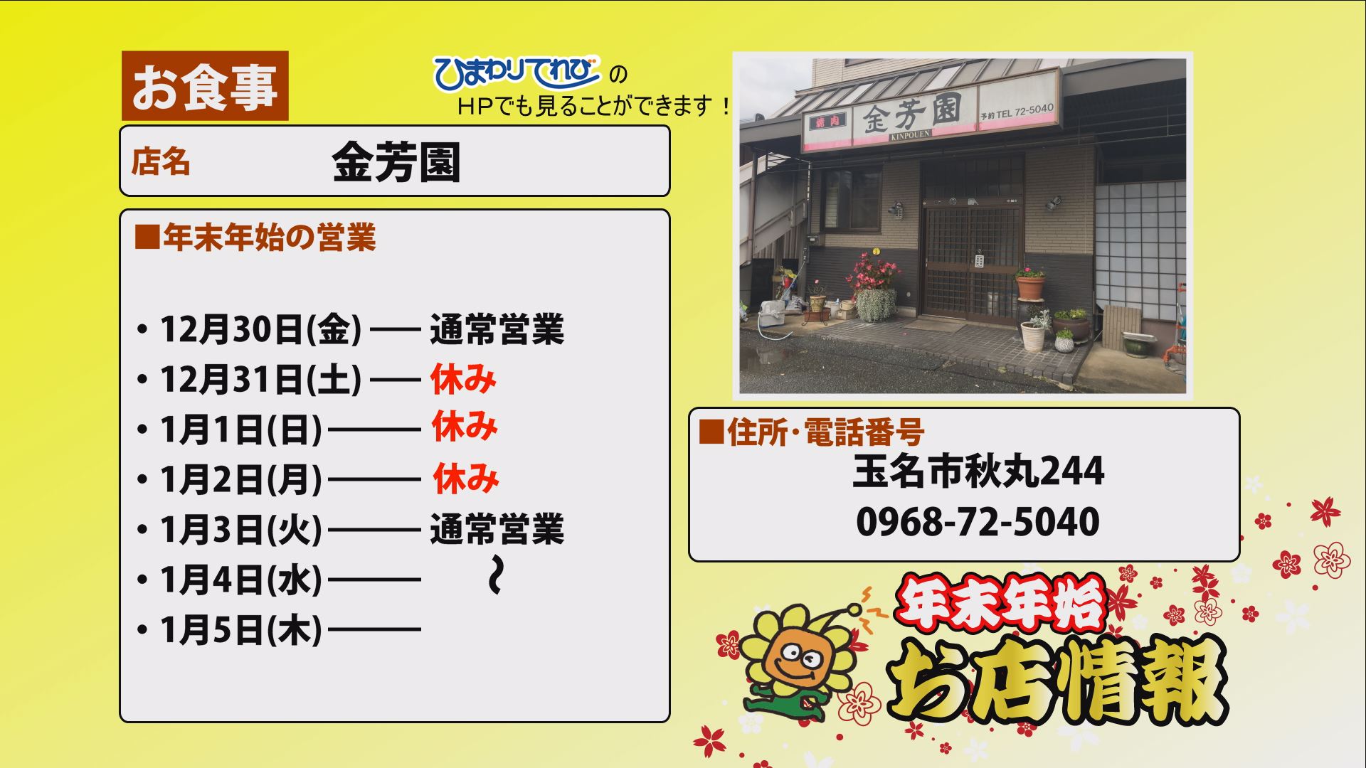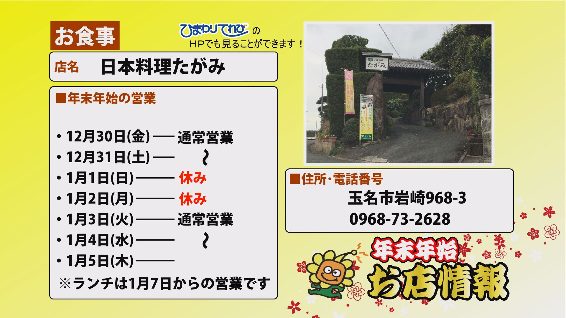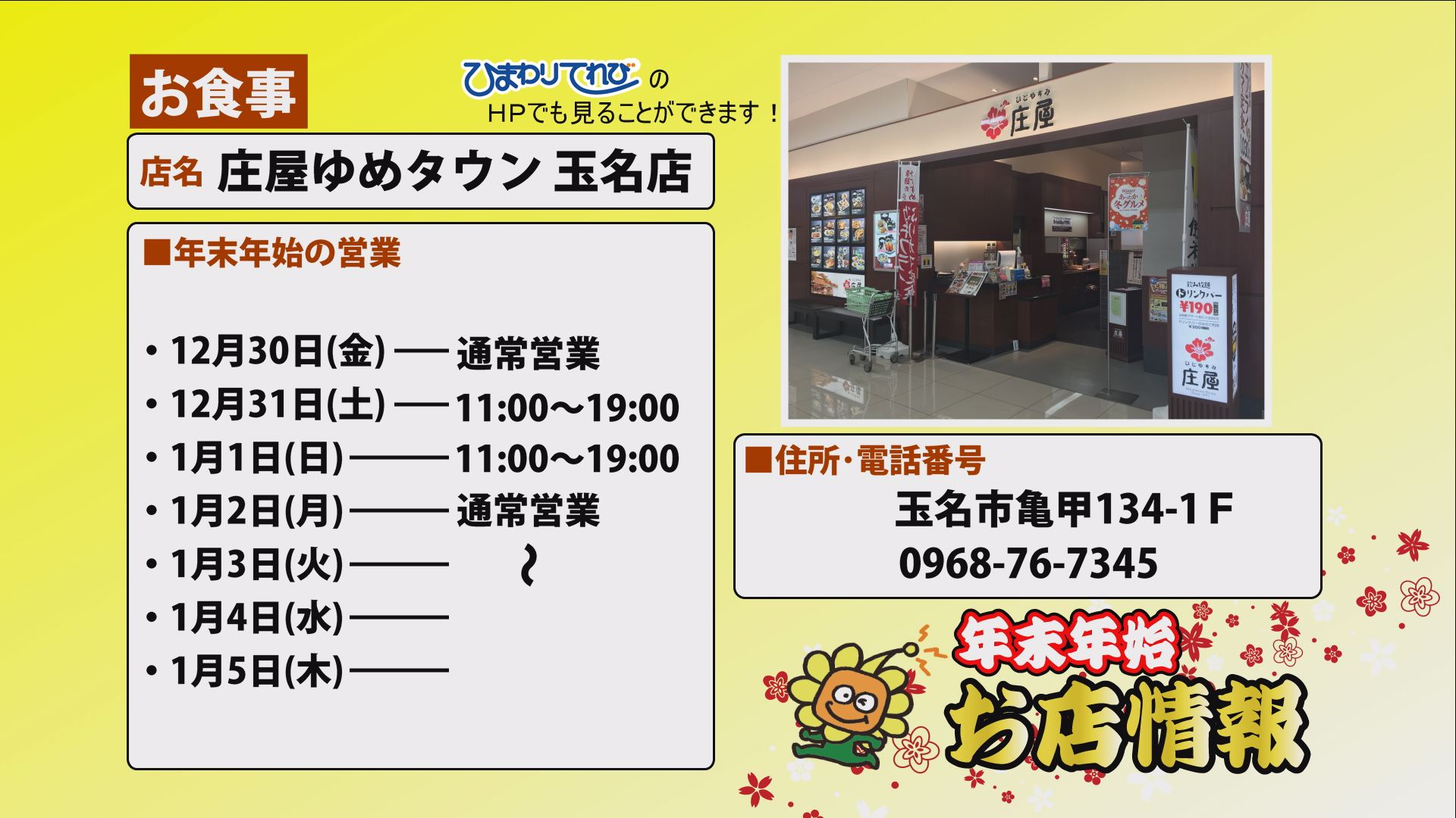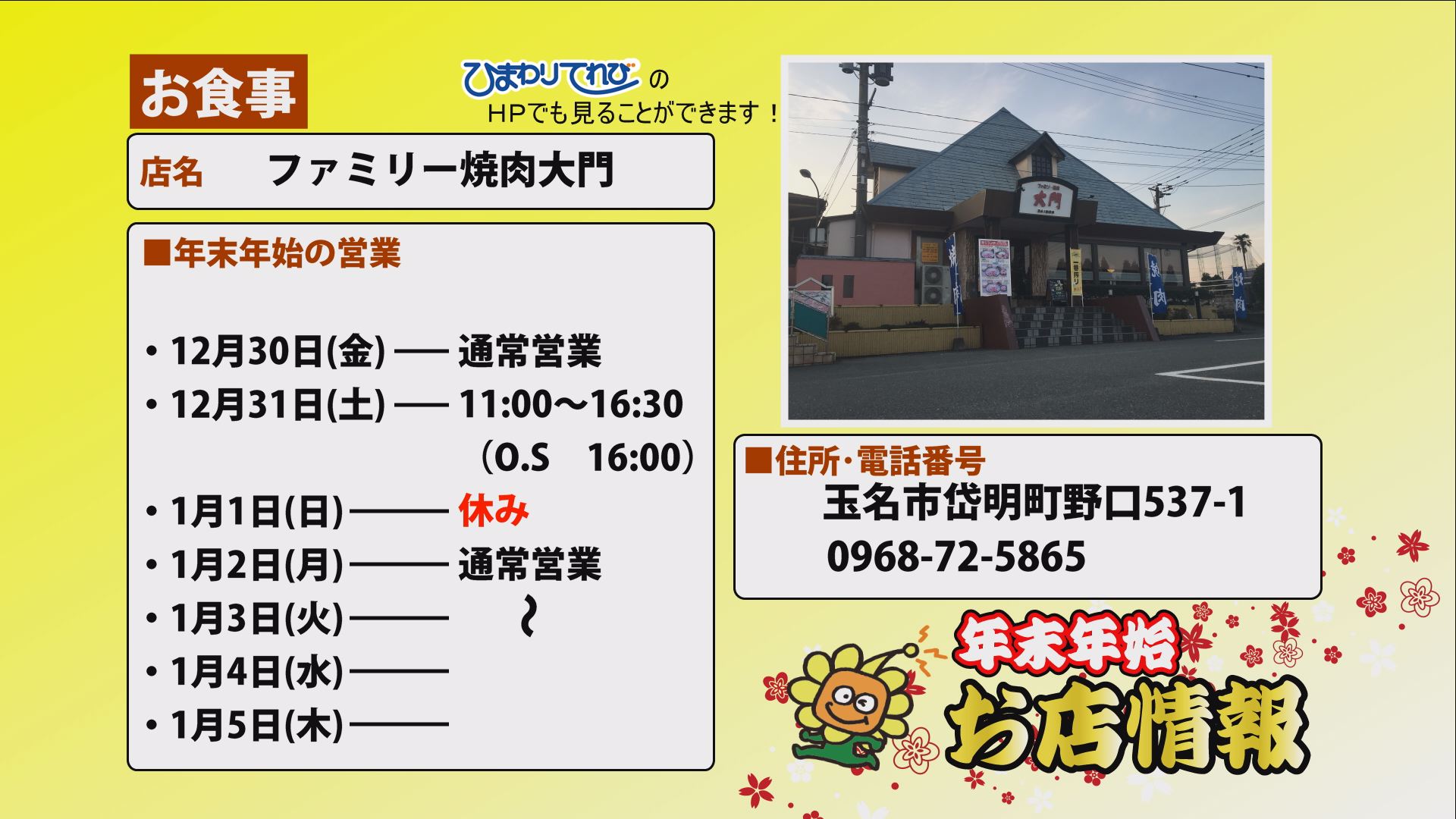 玉名市にあるお店の年末年始店舗情報が見られる! ■4つのジャンルに分かれています!