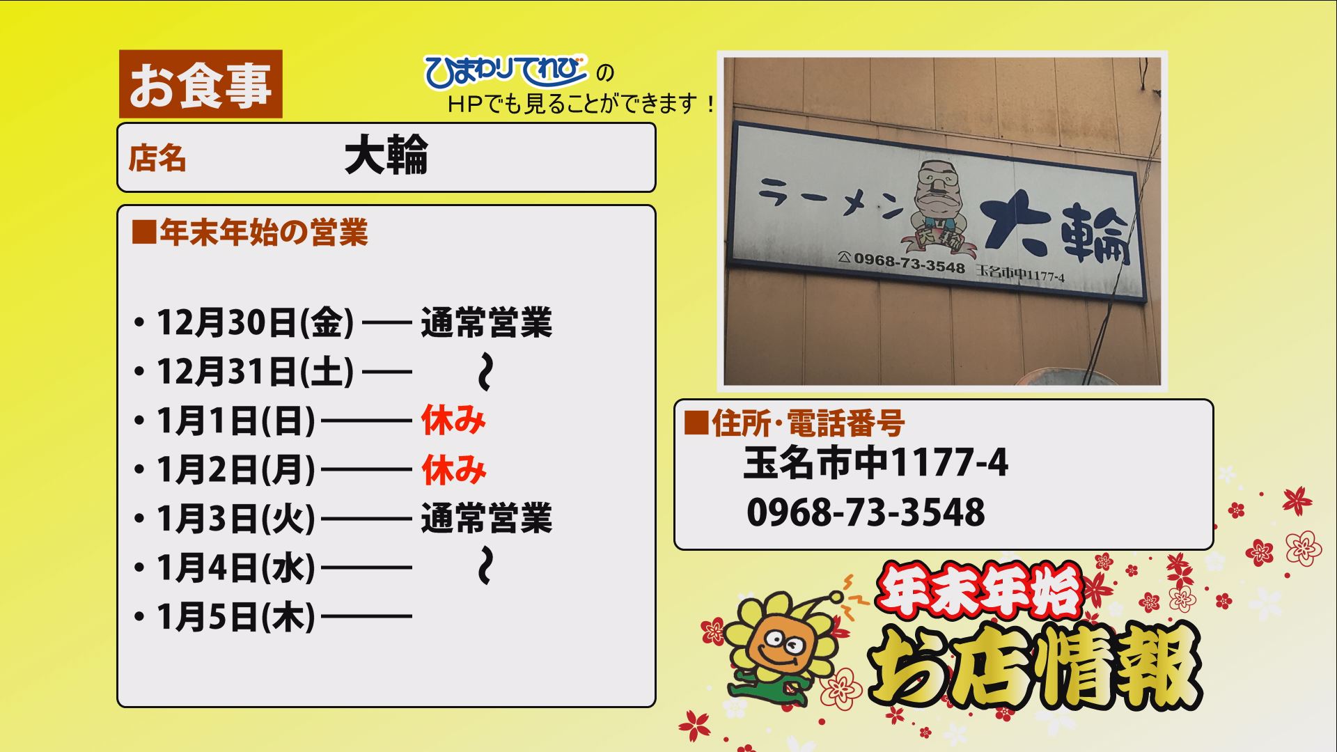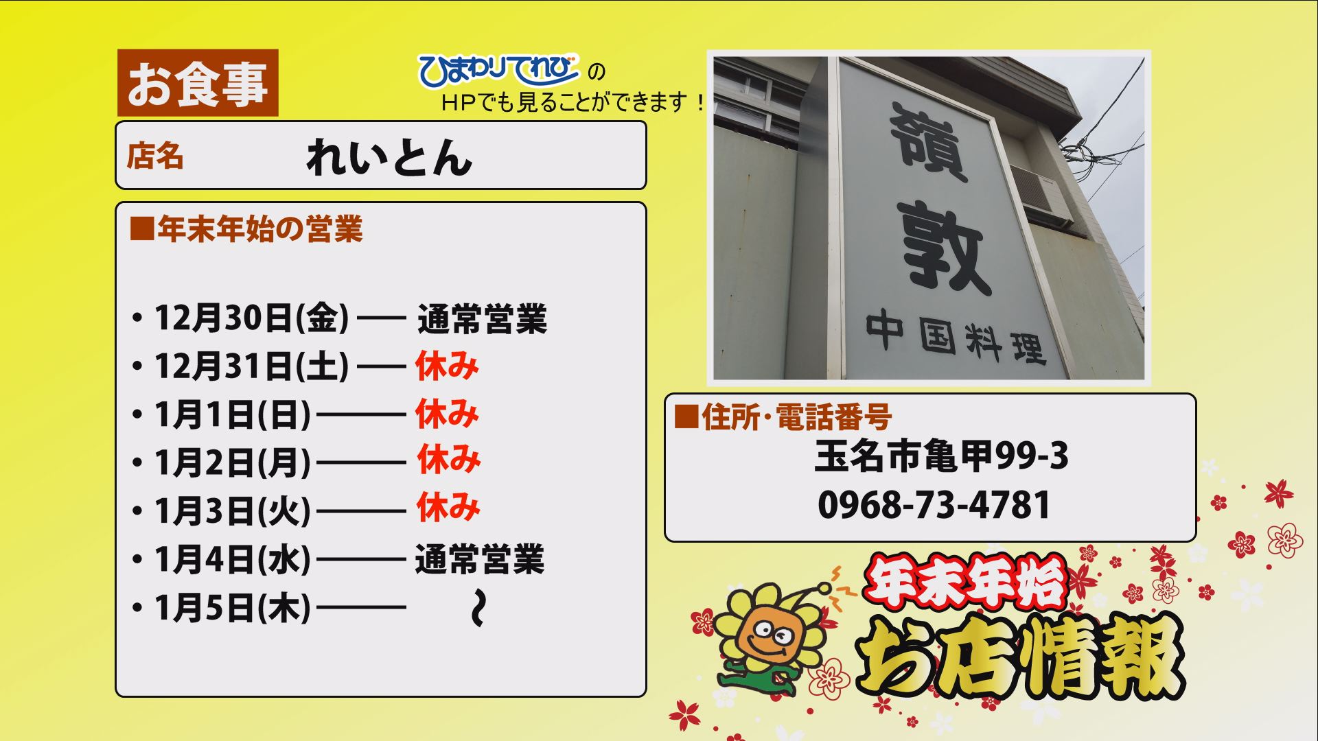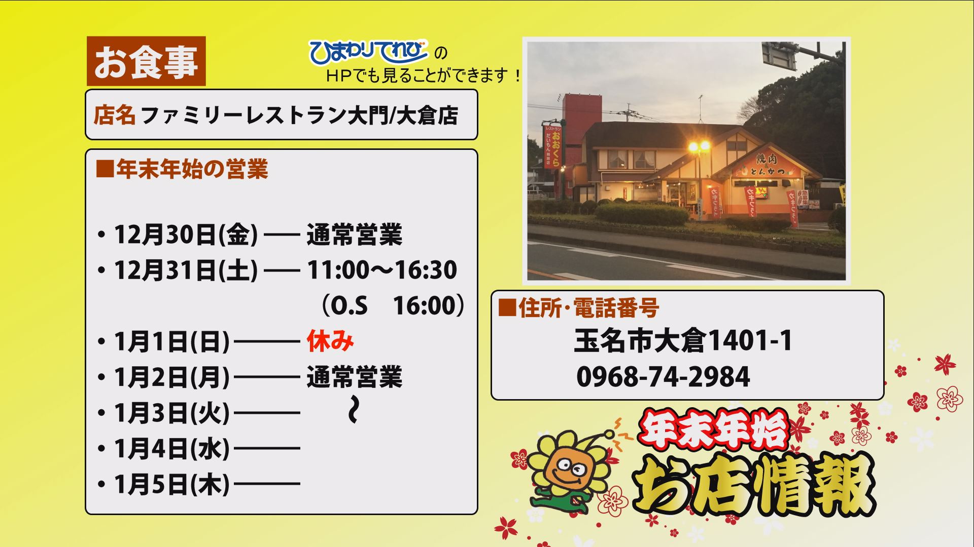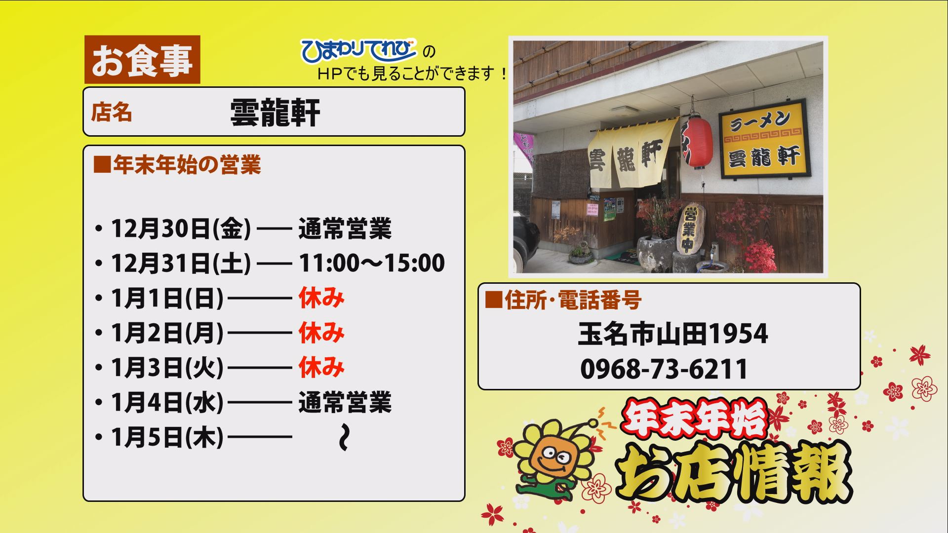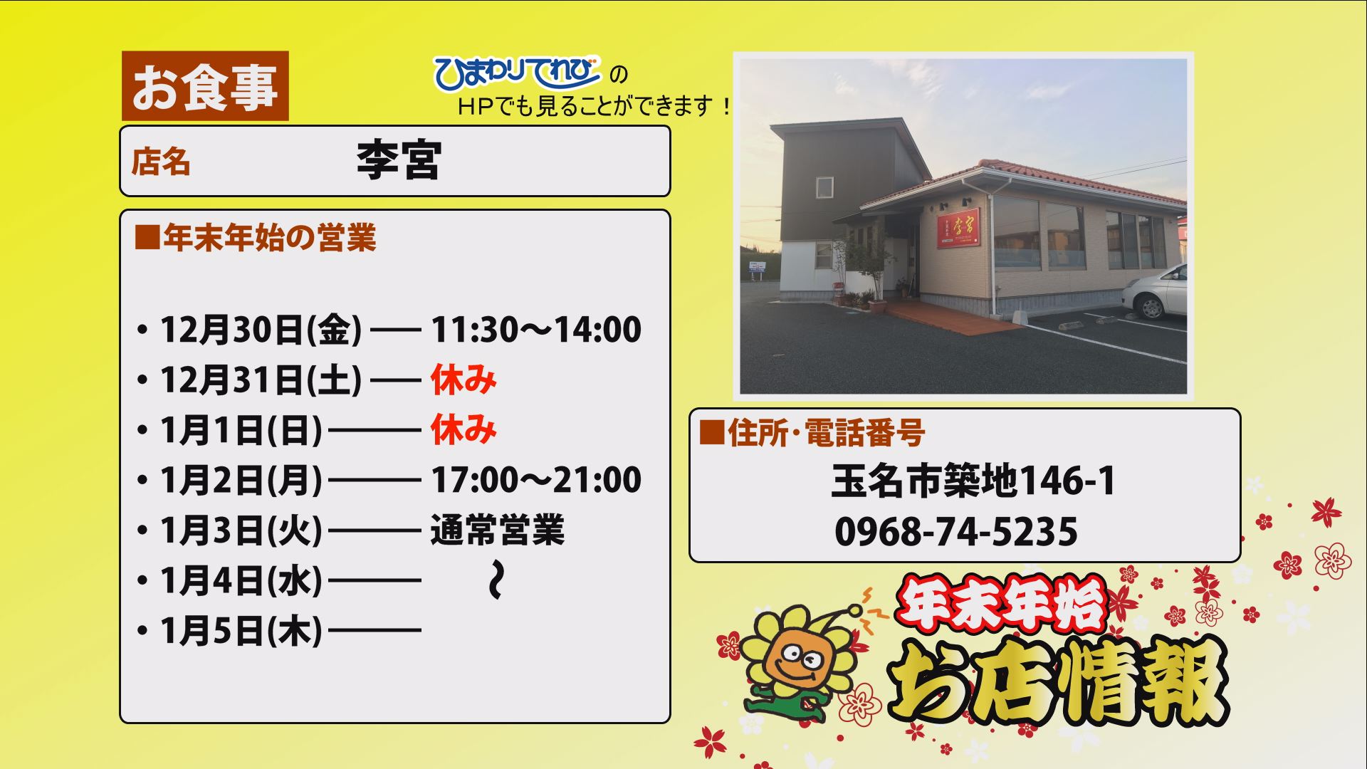 玉名市にあるお店の年末年始店舗情報が見られる! ■4つのジャンルに分かれています!