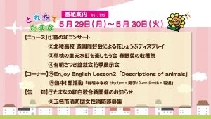 > とれたてたまな番組案内 5月29日(月)、30日(火)