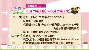 > とれたてたまな番組案内6月26日(月)、27日(火)