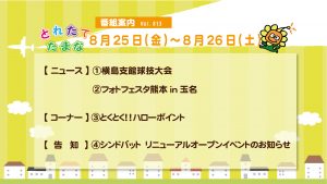 > とれたてたまな番組案内 8月25日(金)26日(土)