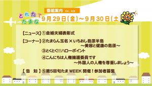 とれたてたまな番組案内 9月29日(金)、30日(土)