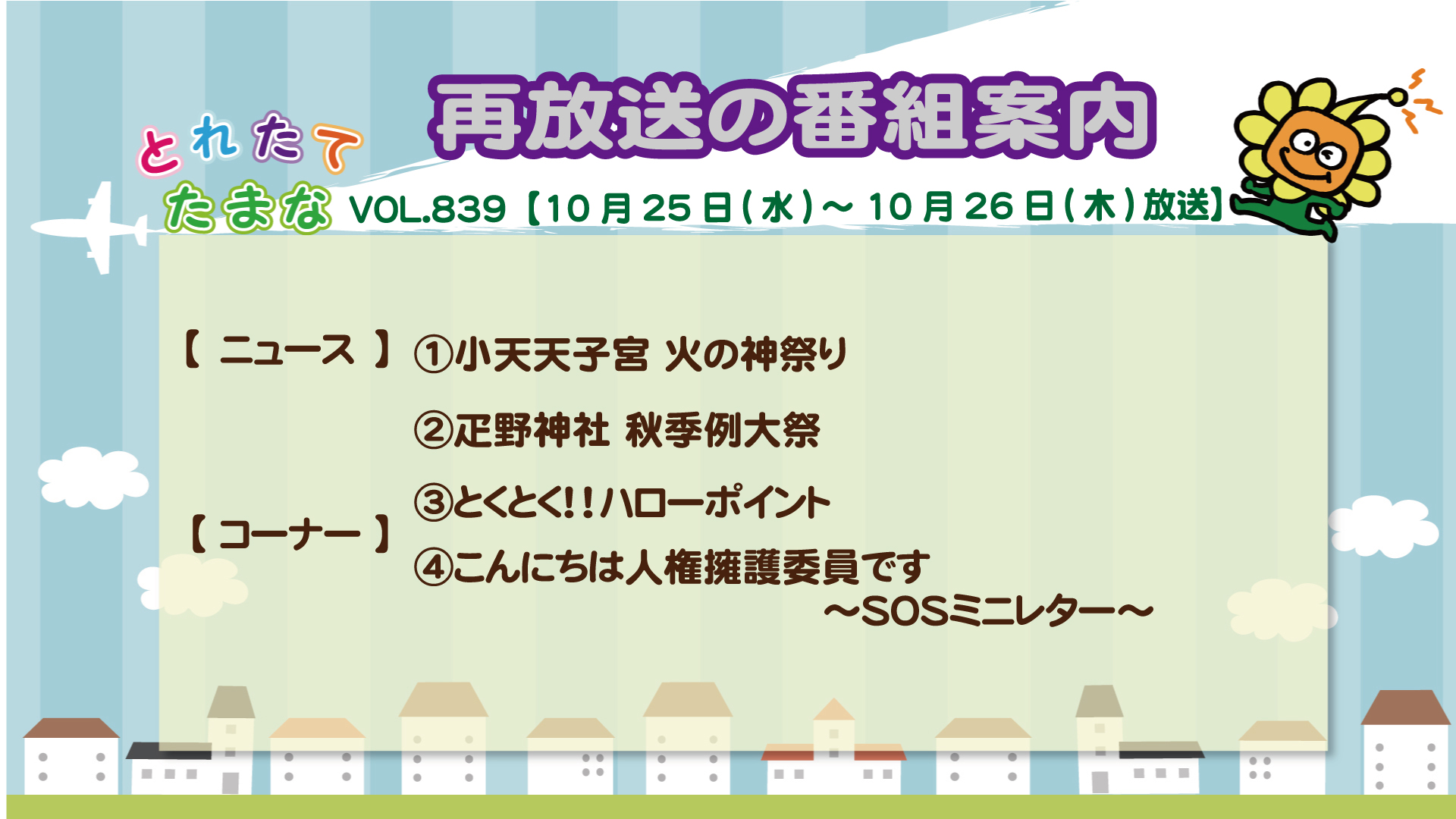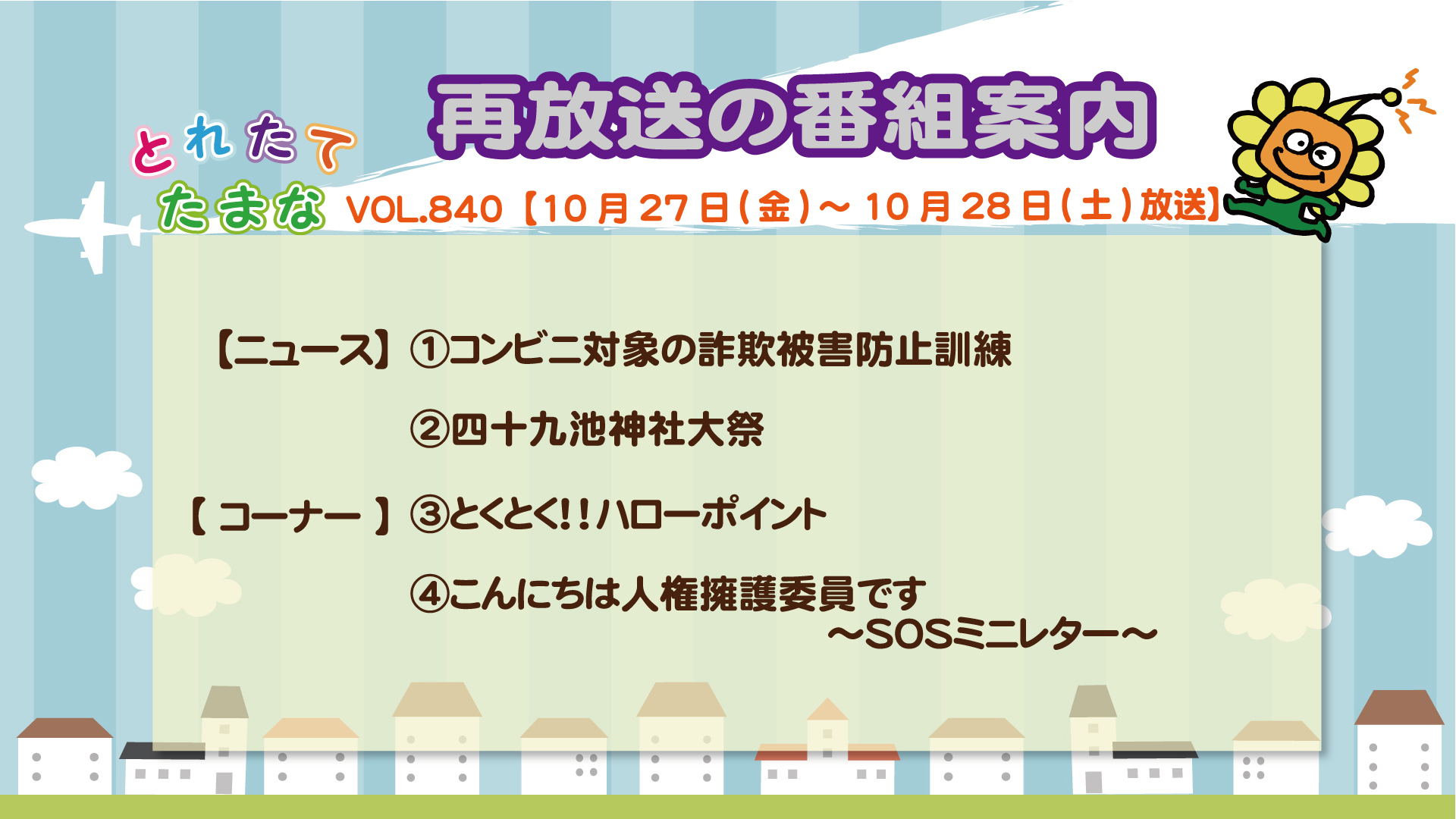 > 10月30日~11月5日の再放送 (VOL.838~VOL.840)