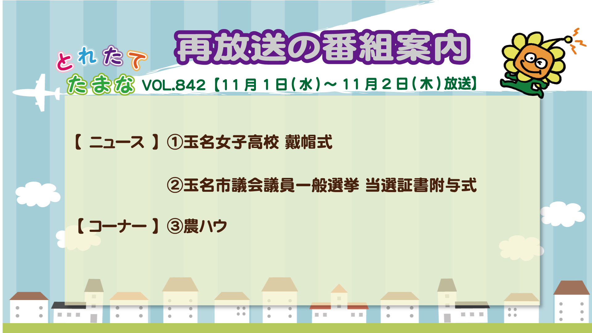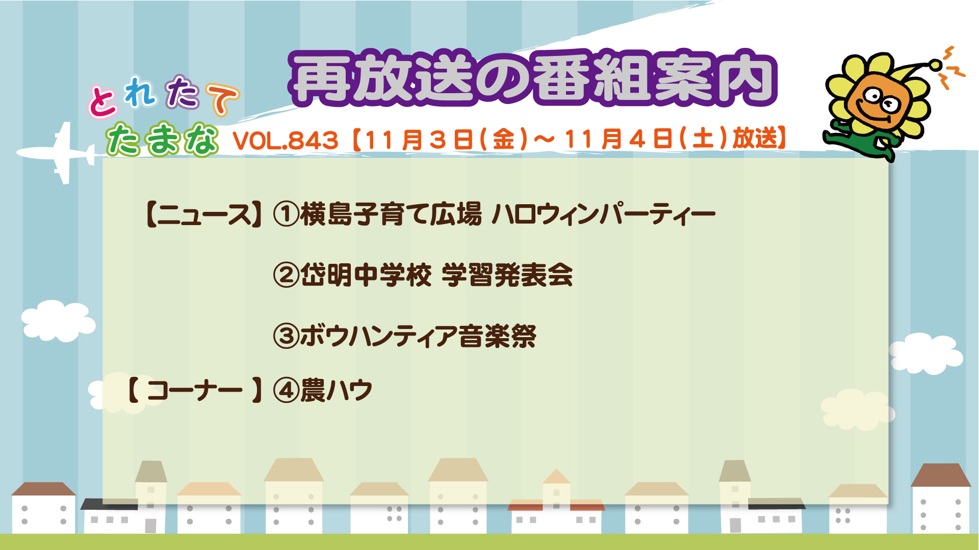 11月6日~11月12日の再放送 (VOL.841~VOL.843)