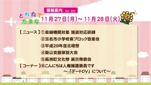 > とれたてたまな 11月27日(月)、28日(火)番組案内