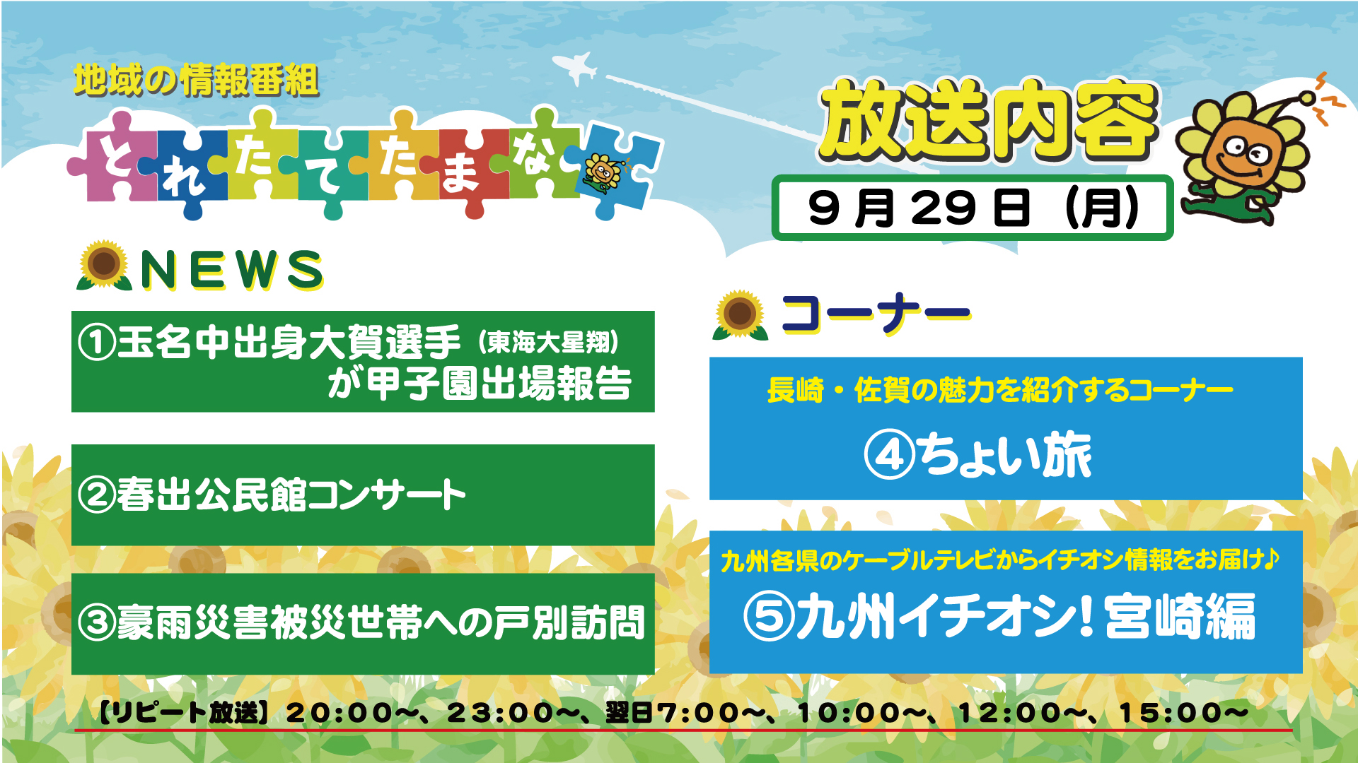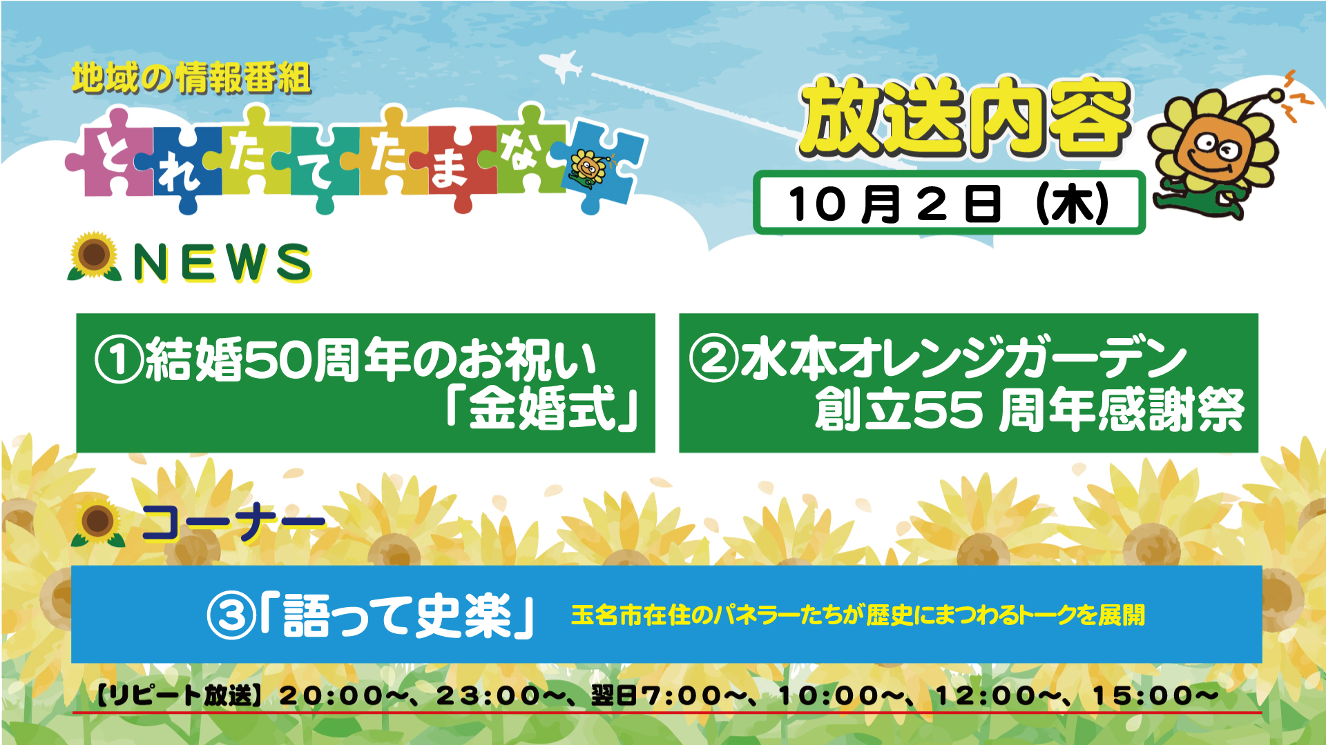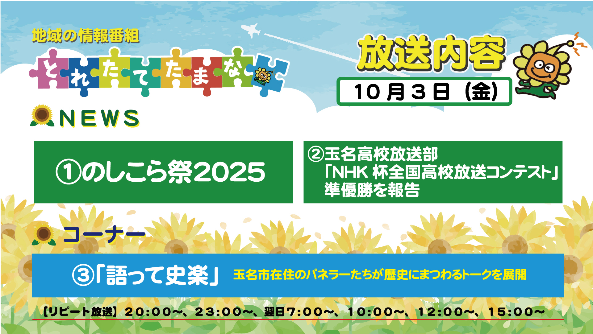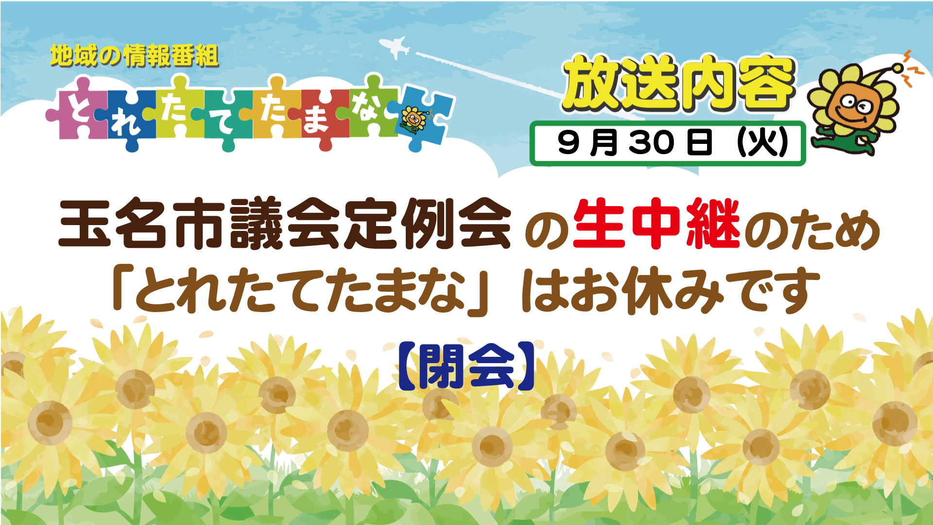番組案内【とれたてたまな】9月29日(月)~10月3日(金)