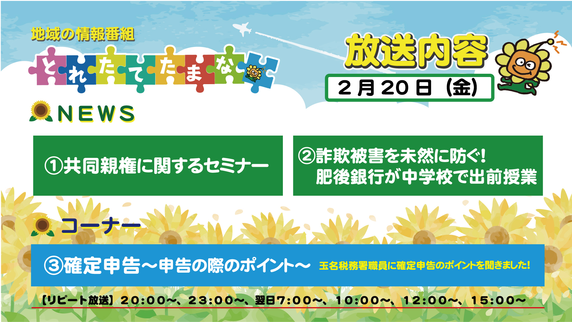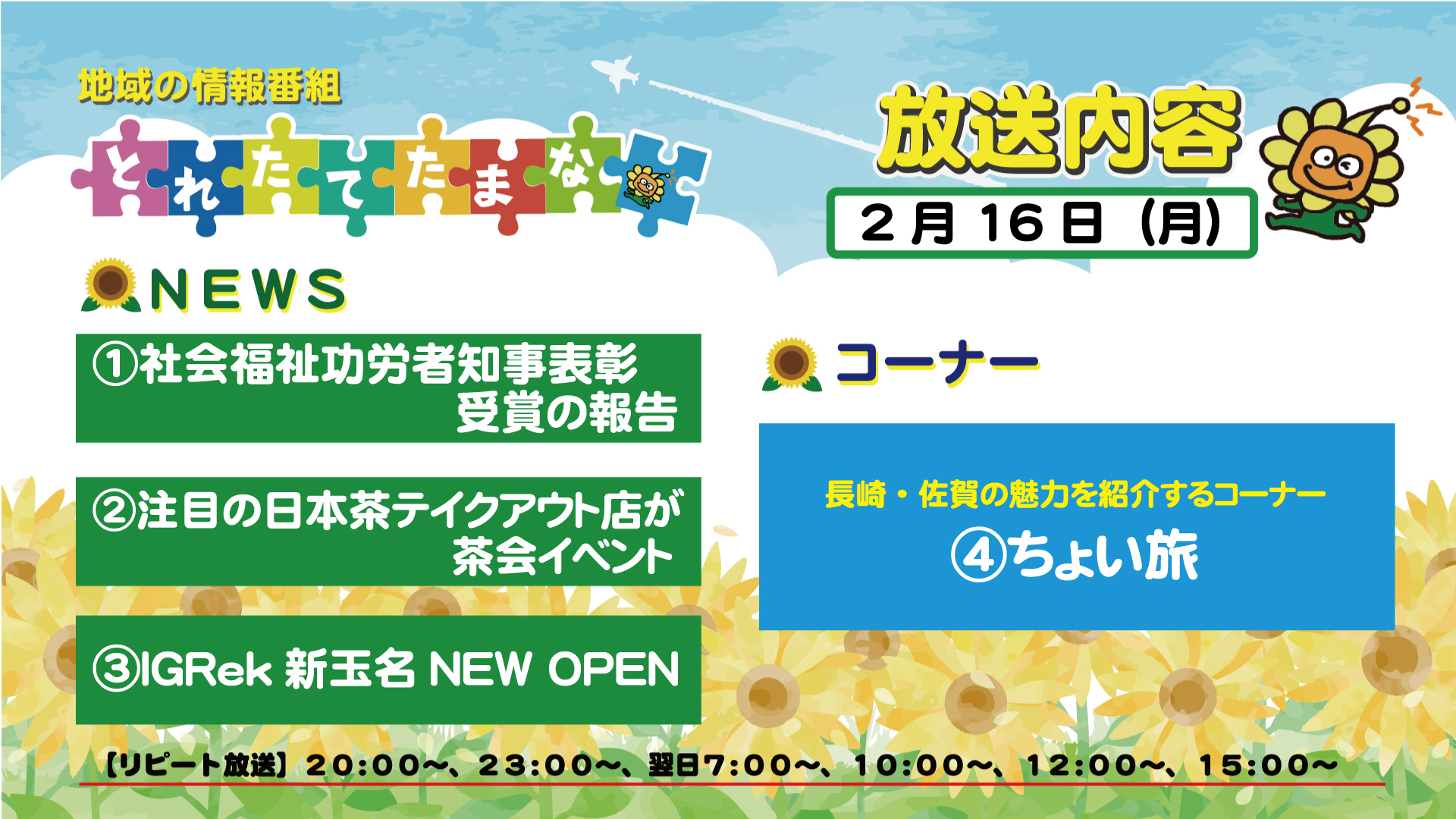 番組案内【とれたてたまな】2月16日(月)~20日(金)