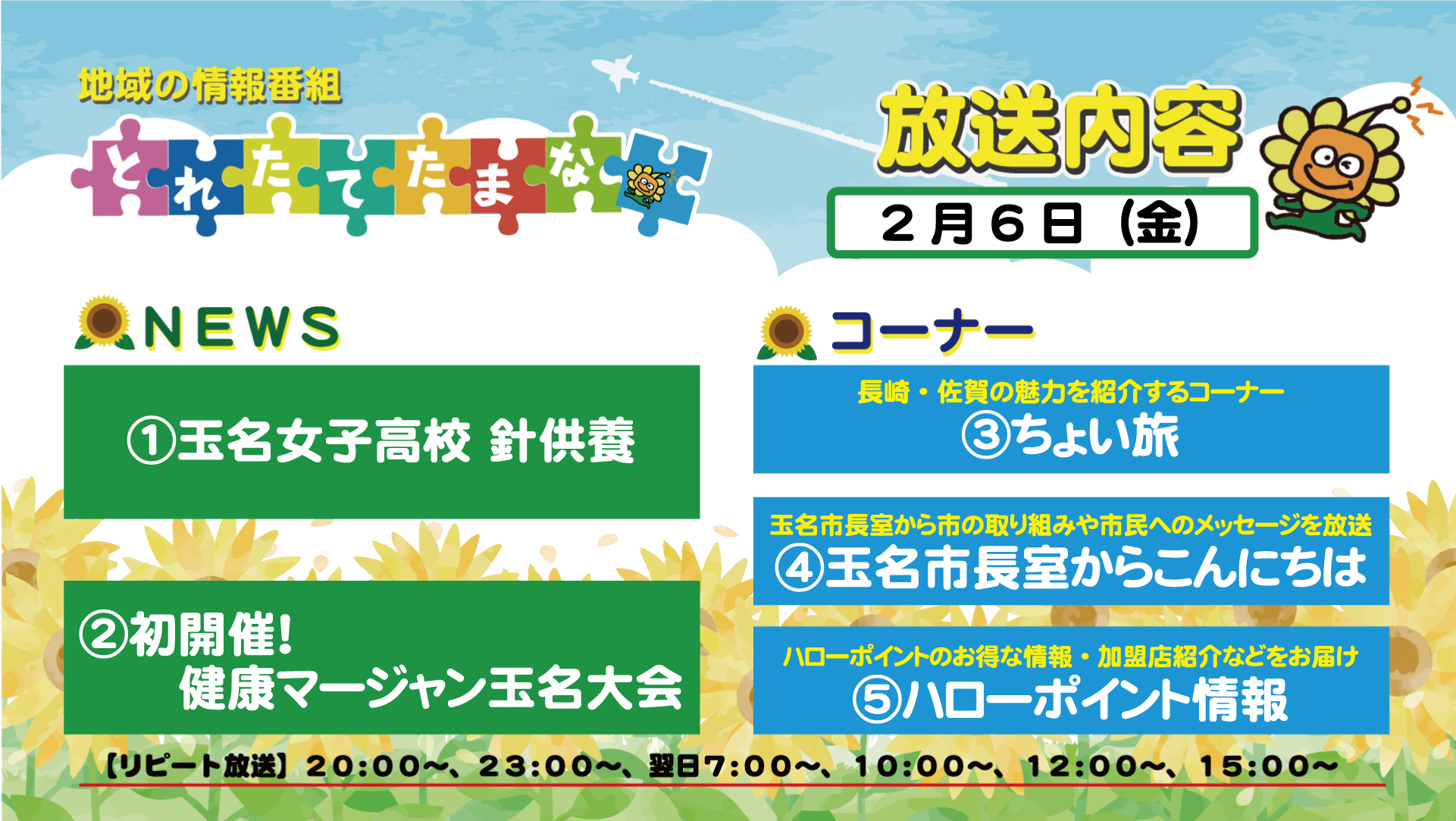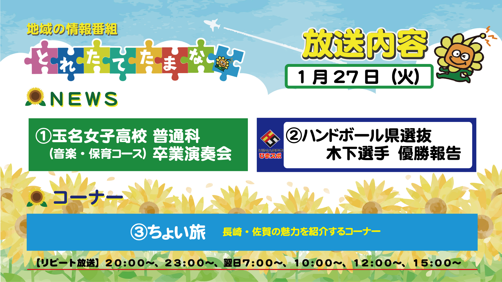 1月19日(月)のとれたてたまなで放送予定だった「ちょい旅」は