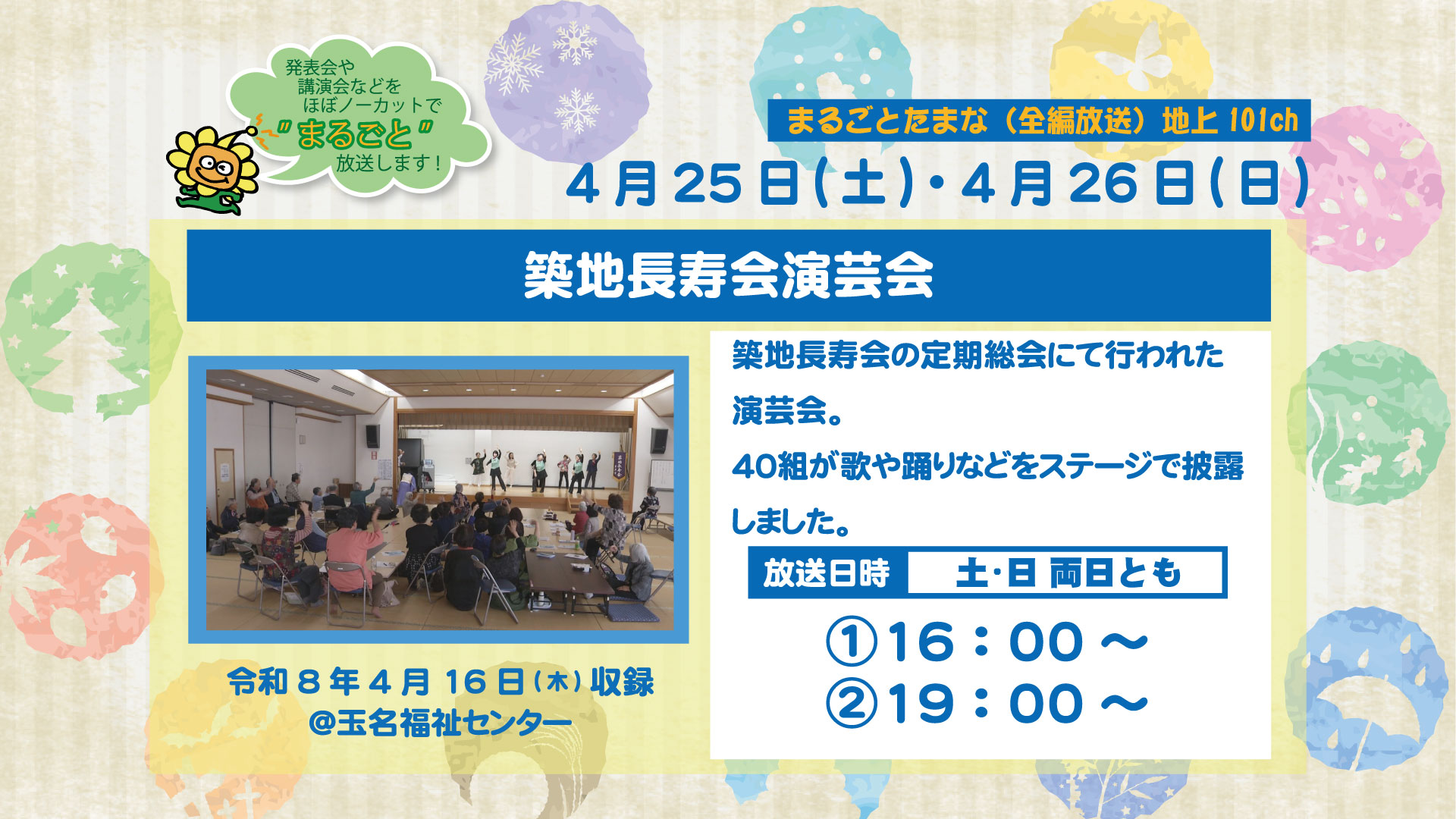 「築地長寿会演芸会」の様子を放送します!